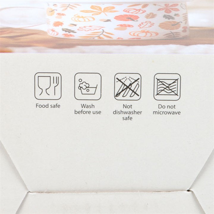 Put yourself in the seasonal spirit of Autumn with this chunky mug, perfect for sipping hot tea and of course the occasional pumpkin spice latte! Printed with a leaf and pumpkin design in autumnal shades of orange and red, this mug is sure to conjur nostaliga as a favorite piece that can be used year after year. Do not microwave. Handwash only. 480ml.